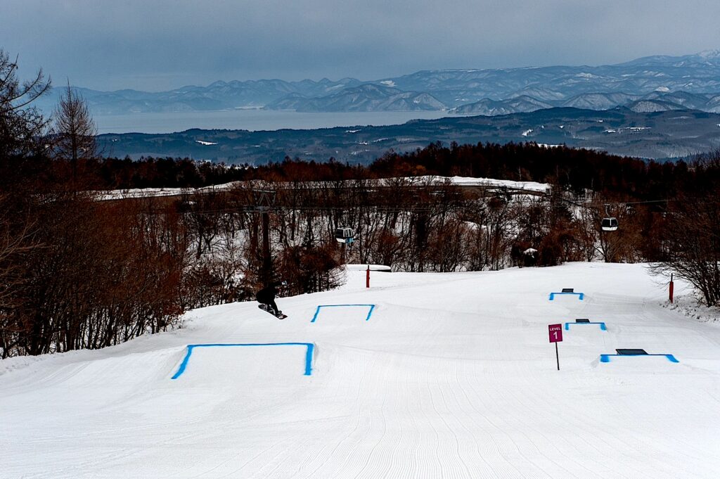 パークについても、一般的にはジャンプ台の距離が2メートル、3メートルと大きくなりがちですが、私たちは1メートル刻みでジャンプ台を設定しています。1メートル飛べたら次は2メートル、と細かくステップアップできるようにするためです。また、ゲレンデは滑れるけれどパークには入ったことがない、という方から、パーク内のルールや待ち方、スタートの仕方に関して不安を感じるとのお声もあったので、「ビギナーパークセッション」という無料プログラムを用意しています。パーク初心者の方が技術だけでなく、「これなら一人で入っても大丈夫」と思って挑戦できることも大切にしています。